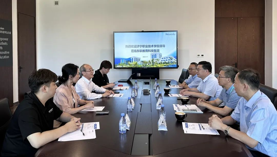 7月7日,济宁职业技术学院党委书记高广立、电子信息工程系书记周卫东、办公室副主任王旭、教学科科长范效亮一行到访我司考察研讨。J9国际站 J9 教育科技集团执行董事、CEO、总裁温涛出席接待,J9国际站 J9 教育科技集团职业教育事业部副总经理惠慧,华中区副总经理李爽,山东区域负责人王宇涵陪同接待。