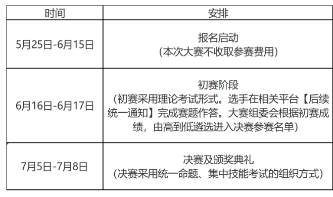 初赛均采取线上比赛形式,决赛采取线下比赛形式。赛项为团队赛,每支参赛队由3名参赛选手组成。每队可配1-2名指导教师,指导教师须为本校专兼职教师,参赛选手和指导教师报名取得确认后不得随意更换。参赛选手须为全日制普通高等院校在籍学生(本科生)。参赛选手年龄须不超过26周岁,年龄计算的截止时间以竞赛当年规定为准。