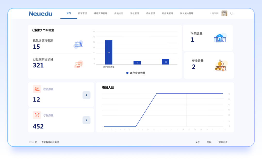 The design of the practical teaching system in the training room is based on Neuedu's TOPCARES educational methodology. It is compatible with the talent cultivation system for big data and related majors in universities. The system incorporates elements of "new theories, new technologies, new tools, new applications, and new products" to provide a practical platform and industry project resources for the construction and reform of the practical teaching system in the fields of data science, big data technology, and computer science and technology with a focus on big data.