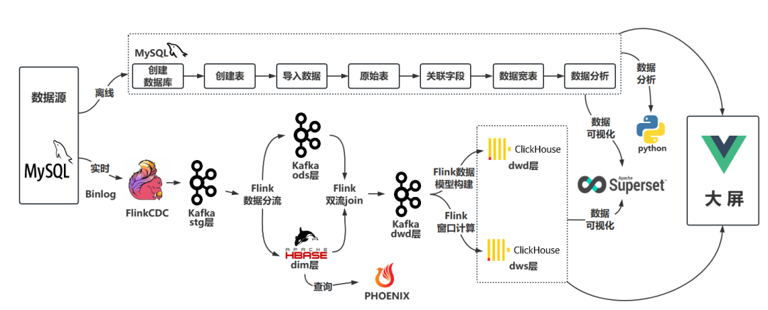 Students will become proficient in using various technologies and tools, including JDK, Flink, FlinkCDC, Kafka, Hbase, Phoenix, ClickHouse, Hadoop, Superset, Redis, MySQL, SpringBoot, Vue, Miniconda, Python, TensorFlow, Nginx, etc. This will help enhance students' problem-solving skills and cultivate their ability to innovate when dealing with practical issues.