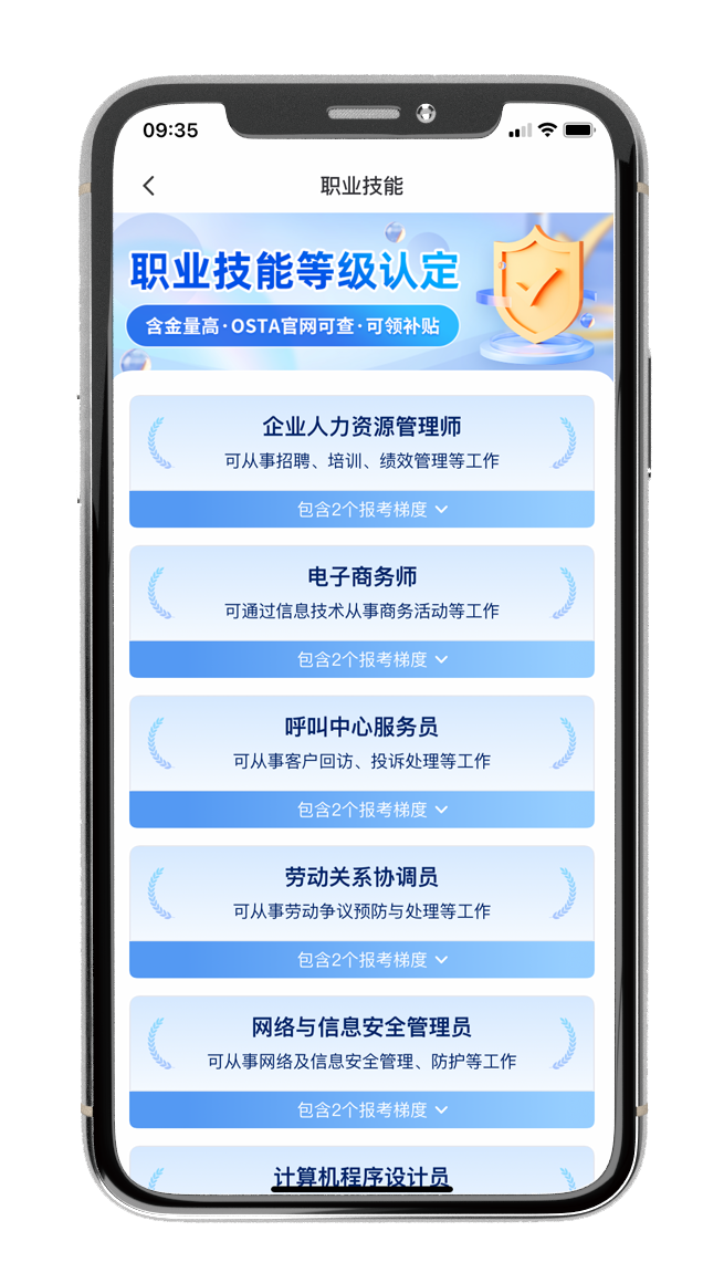 平台包含“企业人力资源管理师”、“电子商务师”、“网络与信息安全管理员”、“计算机程序设计员”、“快递员”、“育婴员”等数十个职业技能工种;涵盖理论知识、职业道德规范、通用职业素质、就业指导、工匠精神以及新知识、新技术、新工艺等多方面内容,为全省相关个人、社会培训组织、高技能人才培养基地、各类企业等给予在线学习平台及学习资源服务,助力辽宁省“十四五”期间高质量完成150万人职业技能培训目标。