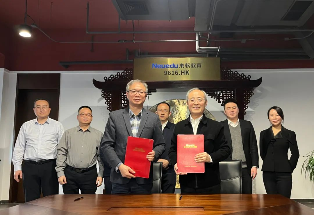座谈结束后,温涛总裁和李涛书记代表双方签署校企合作框架协议。邓海波副总裁和李建光副校长代表双方签署数智融合与健康科技产业学院合作协议。
