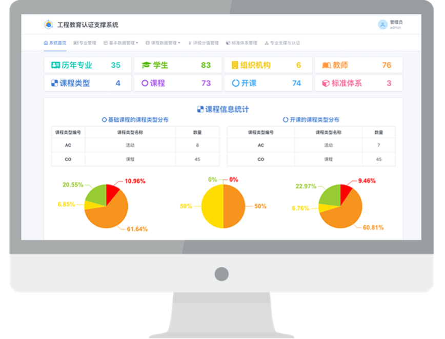 经过自有高校和合作高校的实践验证,面向高校管理人员、专业负责人、课程负责人和全体学生,实现工程教育认证工作全流程分工和实时进度把控。同时支持建立课程目标与毕业要求观测点之间的支撑关系,为认证给予支撑依据。使用信息化方式,解决达成度计算数据量大的问题,自动输出专业毕业要求达成度,以图表形式量化课程结果。对问卷进行管理、发布分享和数据收集,赋能高校取得专业认证过程中需要的各类佐证材料,提升专业认证材料的准备效率。