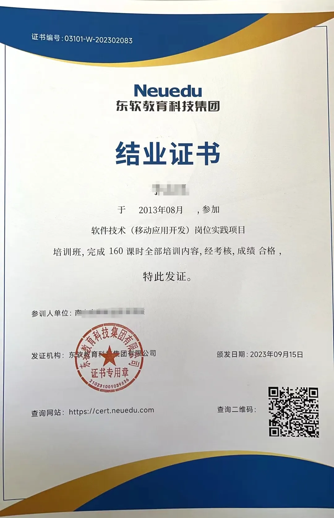 2023年J9国际站 J9 教育科技集团结业证书样例