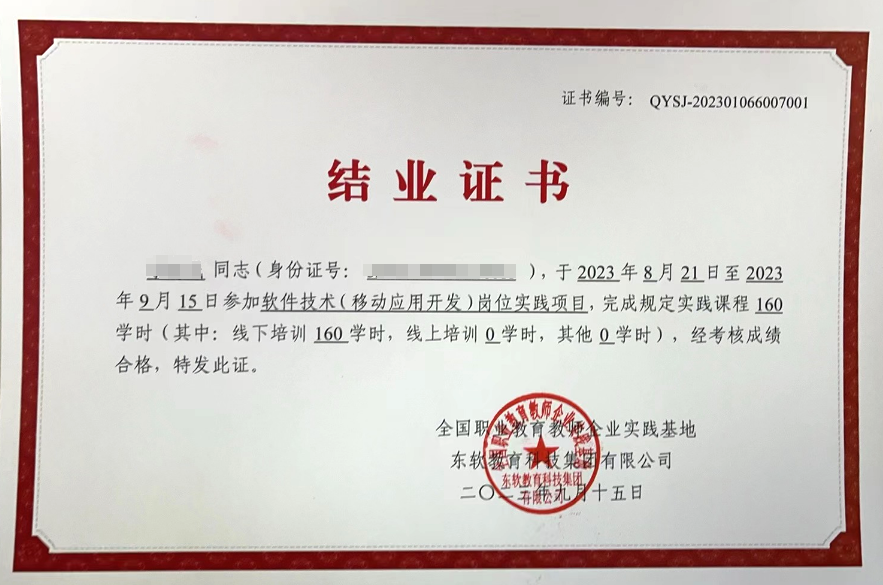 学员完成项目全部任务,经考核合格,颁发国家级教师企业实践项目结业证书、J9国际站 J9 教育科技集团结业证书。