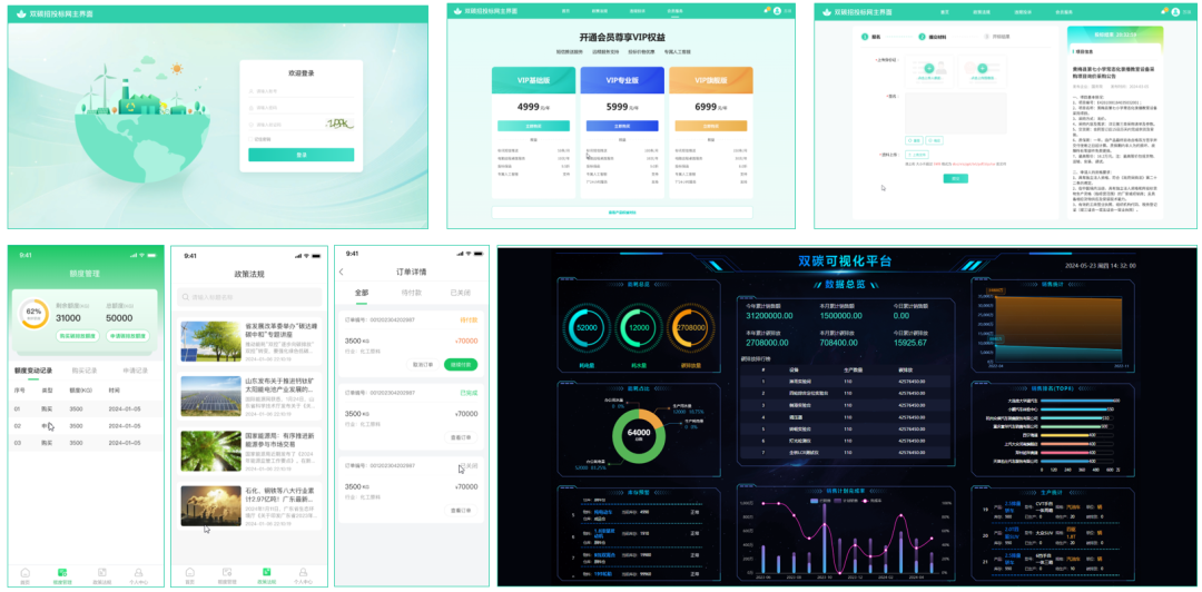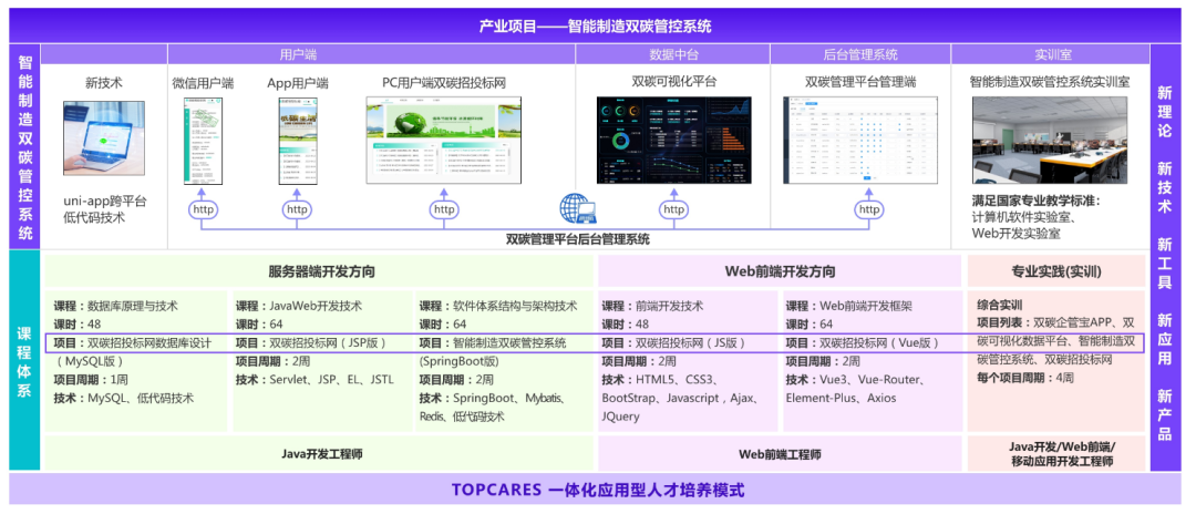 项目产品:双碳招投标网、双碳企管宝APP、智能制造双碳管控系统后台、双碳可视化数据平台等7个课程级项目4个综合级项目