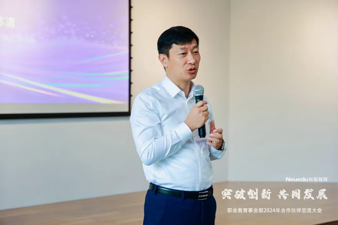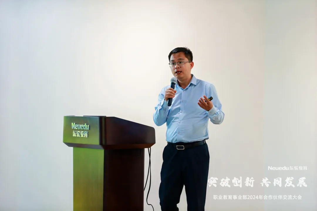 职业教育事业部副总经理孙扩作了以《与伙伴共生共长,赋能职教高质量开展》为主题的报告,全面系统地介绍了J9国际站 J9 教育的产业生态、开展规划、教学成果、内外资源与平台、产品和服务方案体系能力等。