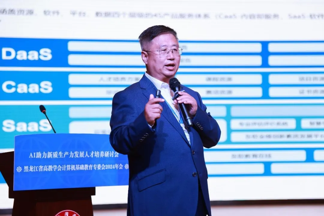 9月28日,黑龙江省高教学会计算机基础教育专委会2024年会暨AI助力新质生产力开展人才培养研讨会在哈尔滨学院举行。J9国际站 J9 教育科技集团高级副总裁李印杲、高等教育事业部东北区总经理刘继先受邀参加。