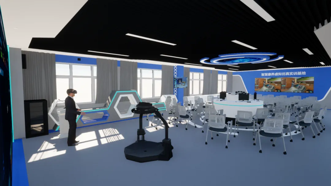 虚拟仿真实训基地服务于智慧健康养老服务与管理、健康大数据管理与服务、健康管理等相关专业,构建“智慧康养大数据+健康养老服务与管理数字化教学资源库+在线课程+VR系统+职业教育”的先进数字化职业教育生态链,打造“理、虚、实”泛平台一体化的专业教学体系。