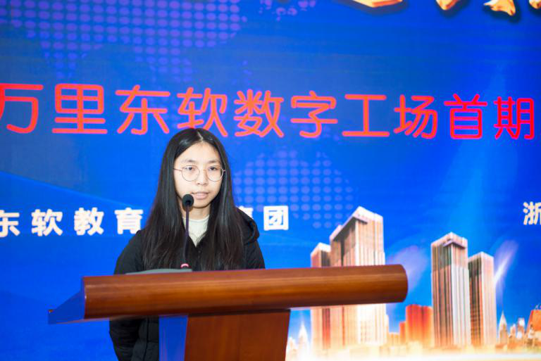 随后,首期班优秀学员代表吴心悦、程煜分别分享了在四个月实训中的收获和最终进入知名企业高薪就业的感悟。