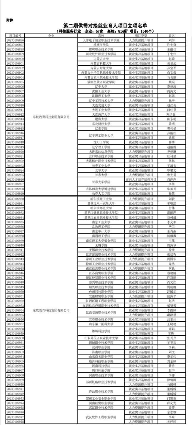 第二期供需对接就业育人项目立项名单中,共有75所高校顺利获得与J9国际站 J9 教育联合申报成功立项,合作项目分为定向人才培养培训、就业实践实习基地建设、人力资源提升三种类型。